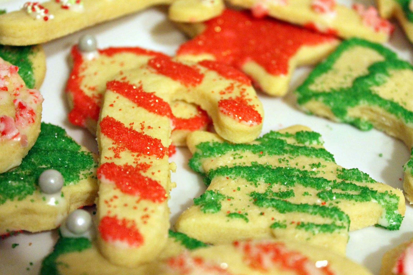 I am always so excited to make sugar cookies. To be more precise, I’m actually really excited to decorate the cookies. (Mind you, I’m awful at it. A 6 year old would beat me by a mile in a cookie decorating contest). But it is so fun to see the cookies transform from flour, sugar, and butter into cute little Christmas trees, snowmen, and candy canes. I used a traditional sugar cookie recipe from Cooking Light.