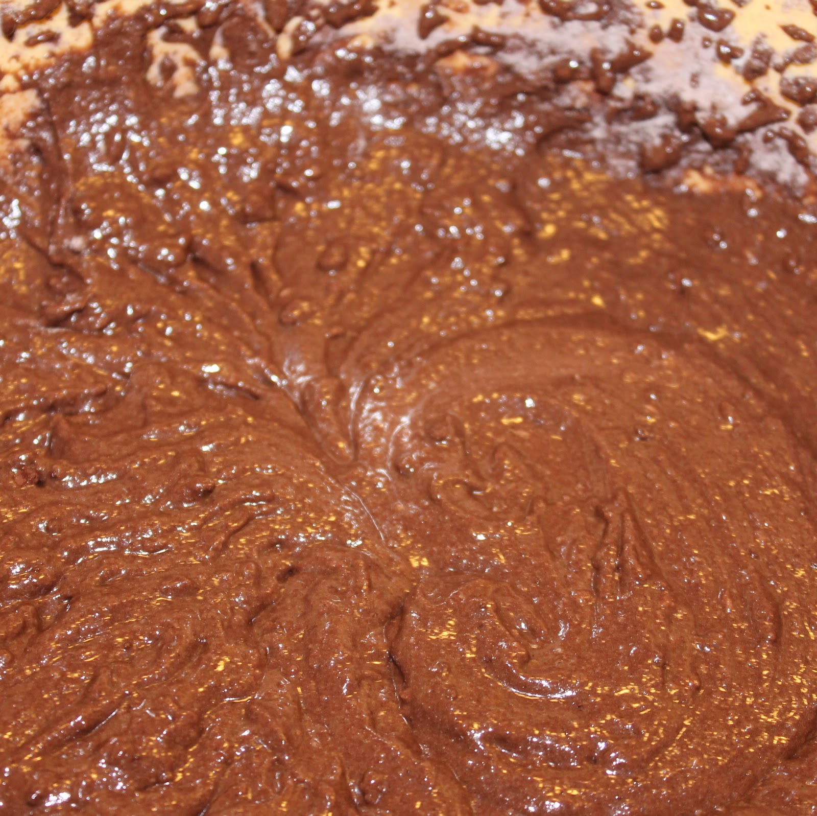 Incorporate the dry ingredients into the wet ingredients as well as the cooled butter-chocolate mixture until just combined.