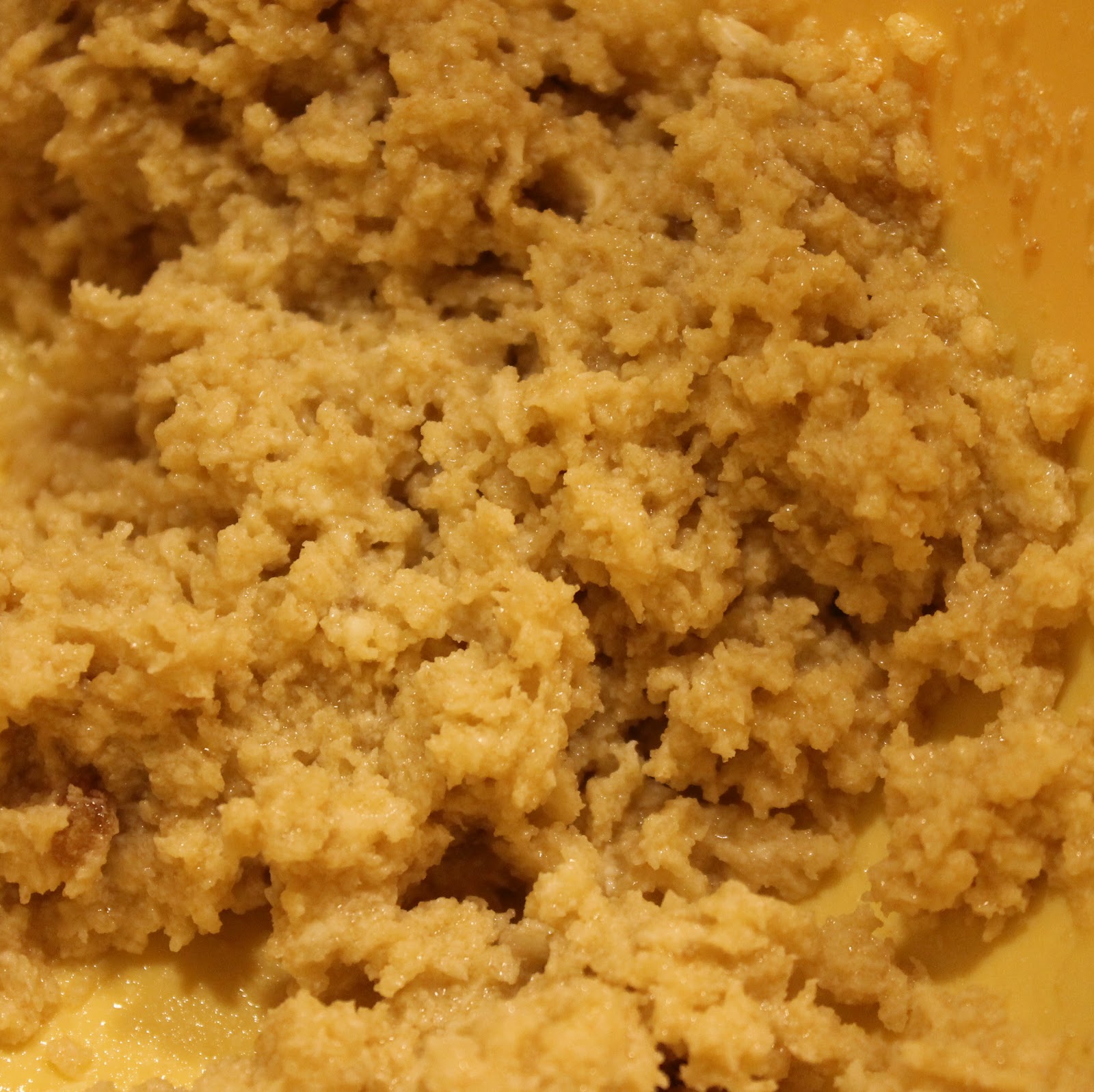 Add the flour mixture to the butter mixture and mix until combined. Mine looked very very crumbly. So if yours looks like this, don’t panic.