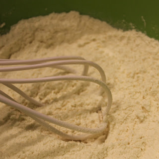 Add the buttermilk mixture and the flour mixture alternately to the large bowl, mixing with a hand mixer in between the addition of each mixture, beginning with the buttermilk mixture and ending with the flour mixture. (I poured half of the buttermilk mixture in, beat the mixture on medium, adding half the flour mixture, and beating on medium. I then repeated this until just combined).