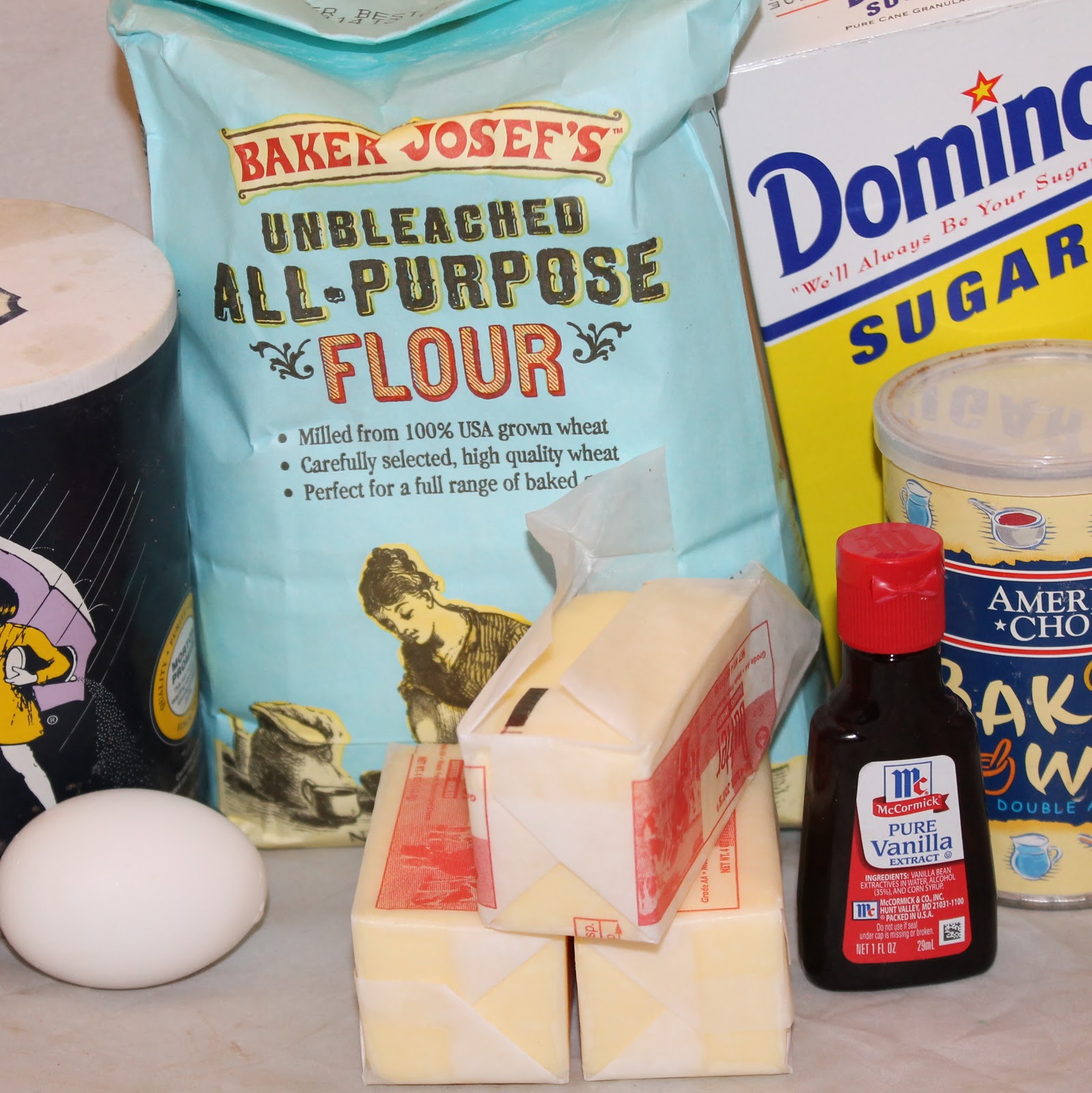 Sift together the flour, baking powder and salt in a small bowl. Set aside. Cream the butter and sugar at medium speed for about 4 minutes or until light and fluffy.