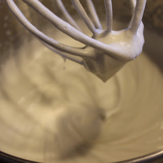 In a separate bowl, make whipped cream. Add two cups heavy whipping cream, 2 ounces bourbon, and 1/4 cup sugar and whip on high speed until soft peaks form (about 3 minutes).