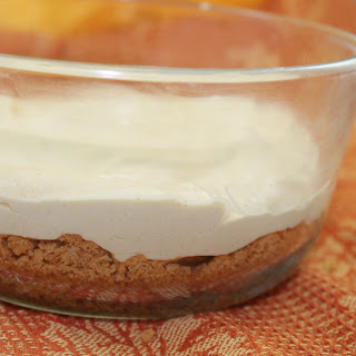 Arrange a layer of cookie crumbs at the bottom of a glass or plastic (see through) bowl. You want to be able to see it coming up the edges. (I initially added melted butter to form more of a crust. But that made the crumbs super sticky, so leave that out)