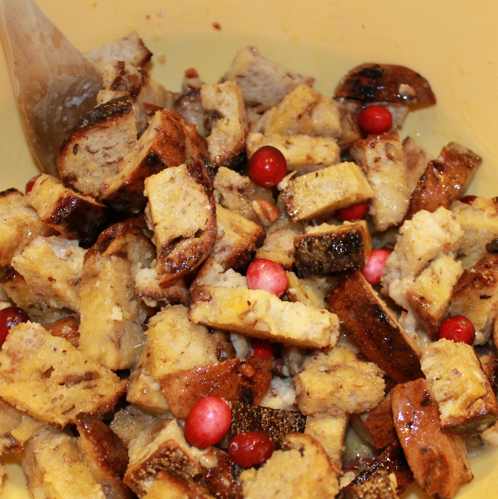 The bread pudding is sweet and slightly toasted, adding a little bit of a crunch to the dish and the cranberries add a pop of tanginess. The lemon-vanilla sauce is citrusy and sweet at the same time.