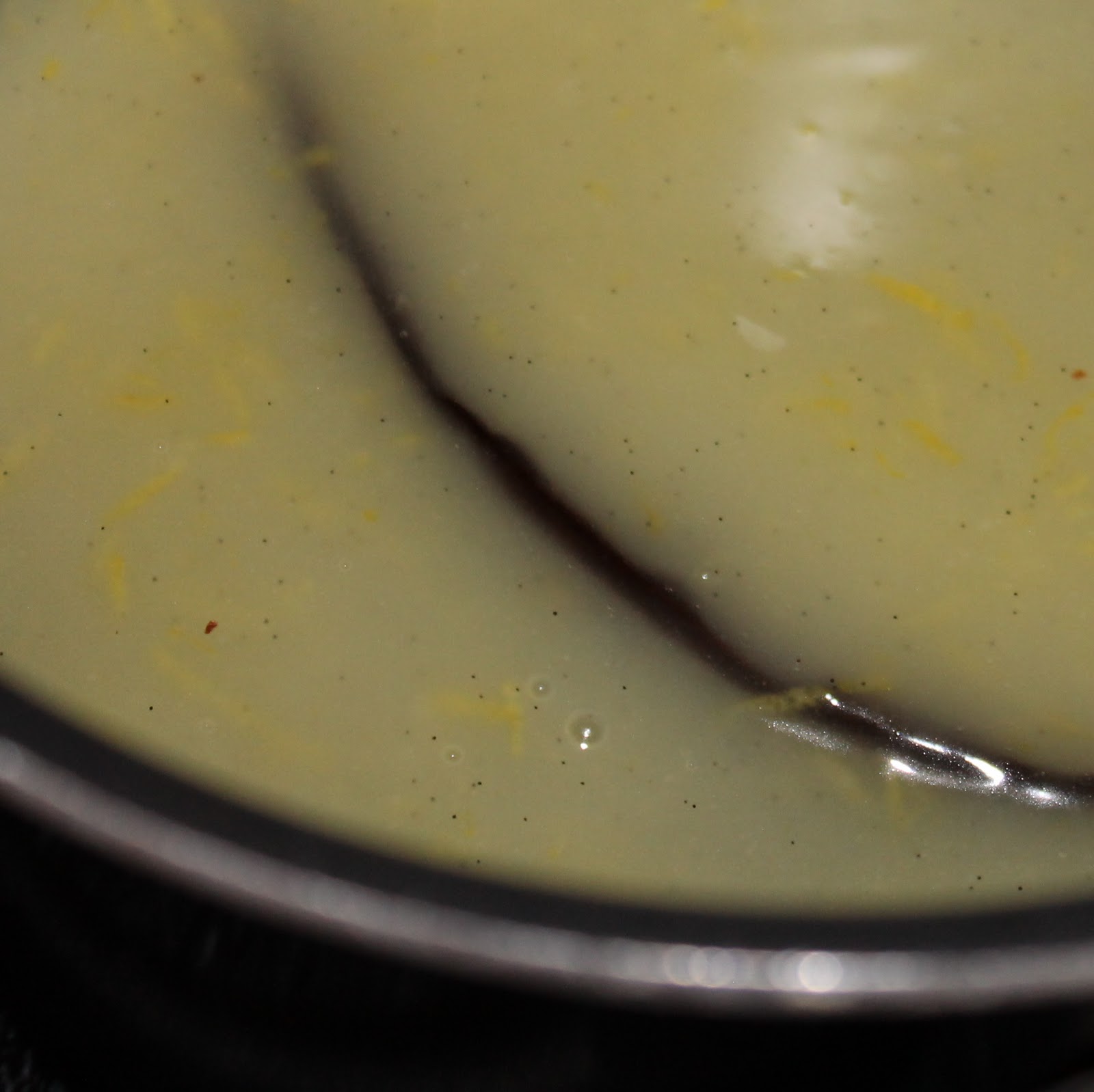 While the pumpkin and bread pudding are baking, make the lemon-vanilla sauce. Split the vanilla seed down the middle.