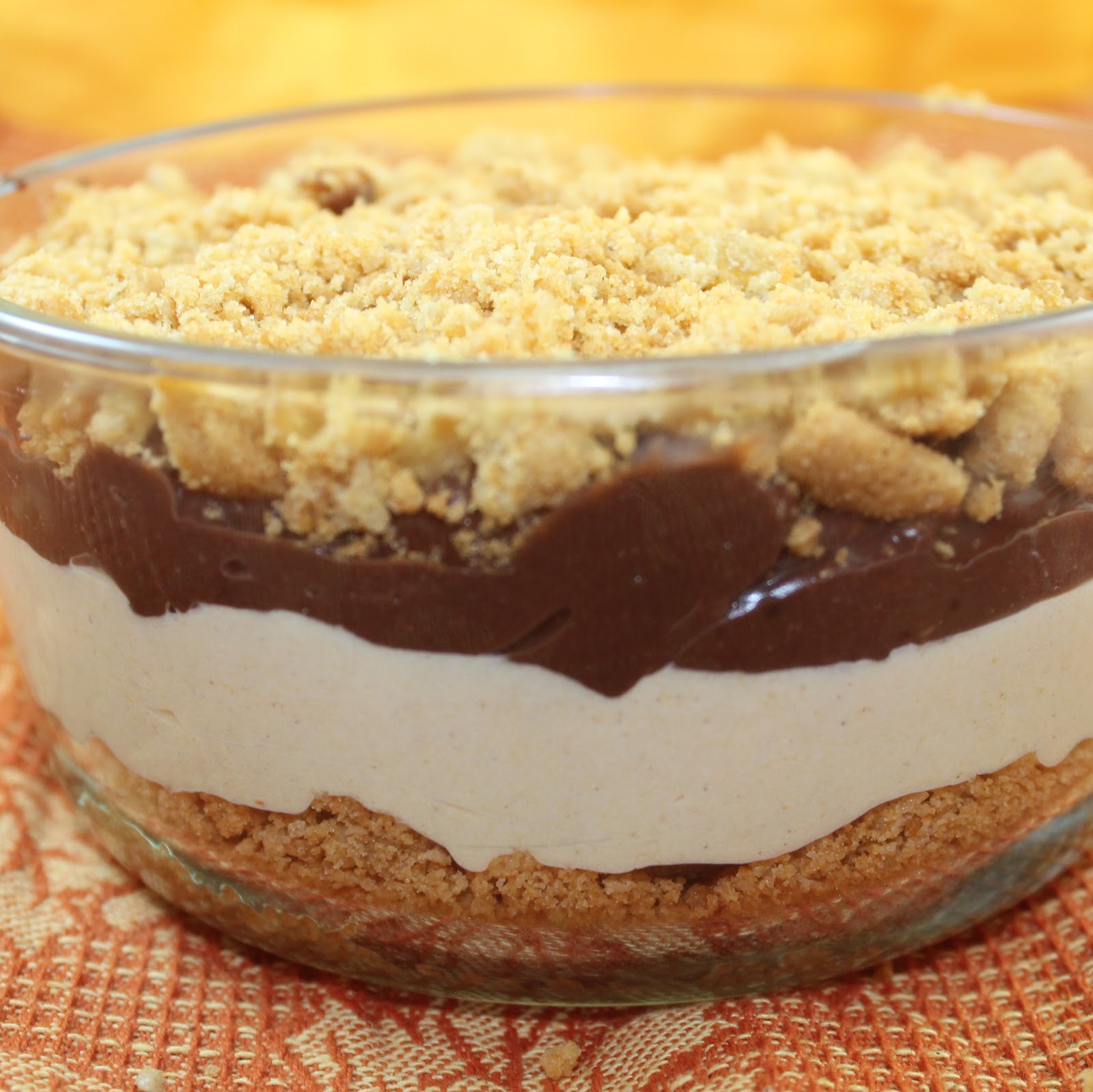 Continue this process until the bowl is filled. (Crumbs, pudding, mousse). Top with the whipped topping.