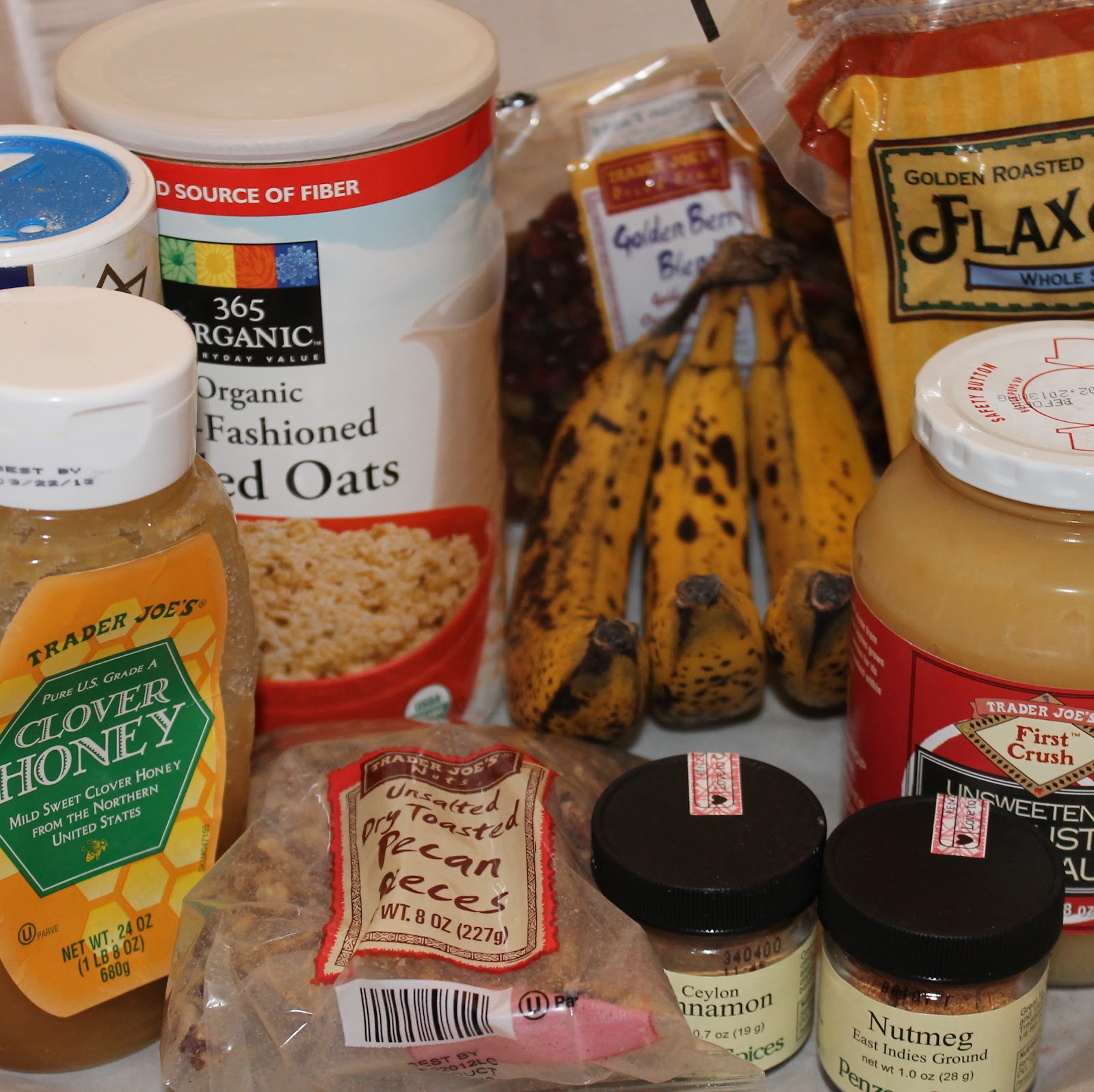 There are so many fantastic food bloggers out there. One food blog I regularly check is Cookin’ Canuck. Dara makes the most appealing looking recipes and her photos are always stunning. She has also cooked her way healthy and has a wonderful post about her journey. Dara has a great recipe for Low Fat Granola Bars with Bananas, Dried Cranberries, and Pecans that I just had to try. I switched it ever so slightly, but you can find the original recipe here.