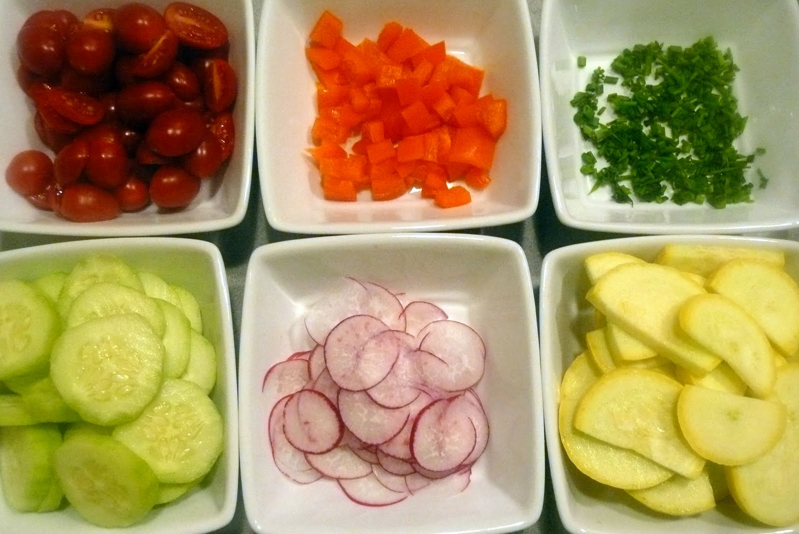 I somewhat unjustifiably feel like I’m eating healthier when there are a bunch of colors in my food, so this dish made me super happy. The key to this salad is to use the freshest ingredients possible. The dressing was very flavorful and the Dijon mustard gave a good amount of acidity to the salad so no vinegar is really needed in the dressing. The original recipe called for chopped avocado, but I failed miserably in my attempt so I mashed it up to save it. Feel free to use chopped avocado instead; it probably looks more aesthetically pleasing. The recipe also called for yellow pear tomatoes, but I wanted a pop of red in the dish so I substituted in grape tomatoes.