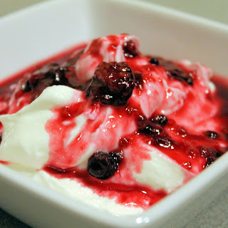 What a perfect way to indulge in a dessert without completely ruining your healthy dinner. The berry sauce is just sweet enough to cut through the Greek yogurt, but not overly so.