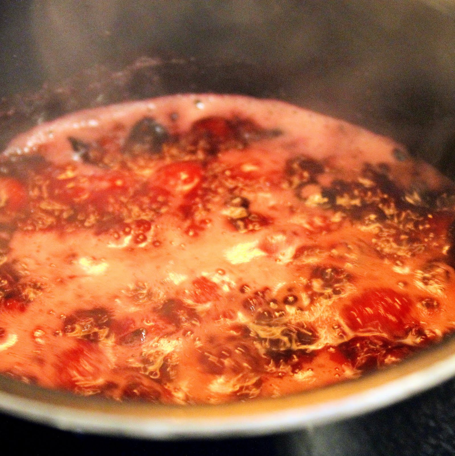 Add the syrup back to the pan and bring to a simmer. Remove from heat and add the berries.