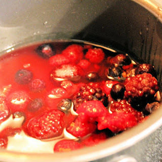 Combine the frozen berry mixture, water, sugar, zest and lemon in a small pan.