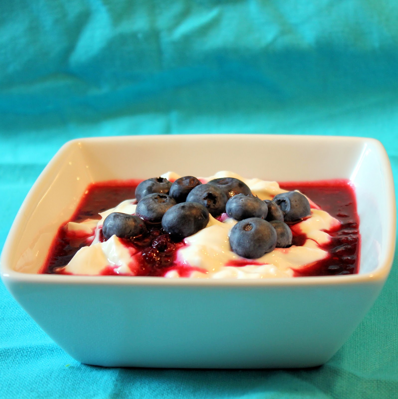 Spoon the berry sauce over the yogurt and serve. Top with fresh berries if you have any on hand.