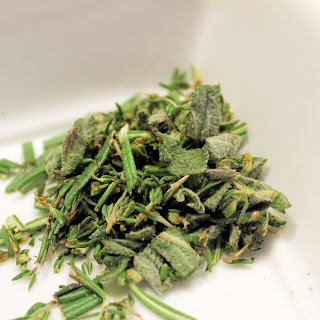 While the potatoes are cooking, chop your thyme, sage, and rosemary. Combine.