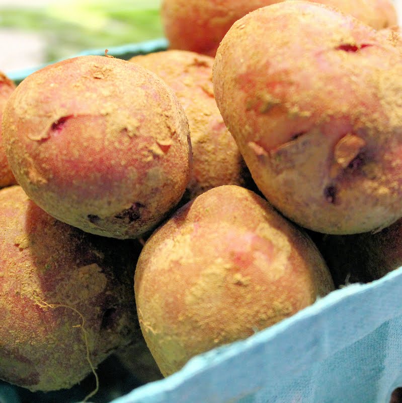 • 2 handfuls of small potatoes (I used red, fingerling, and purple) – Very scientific, I know