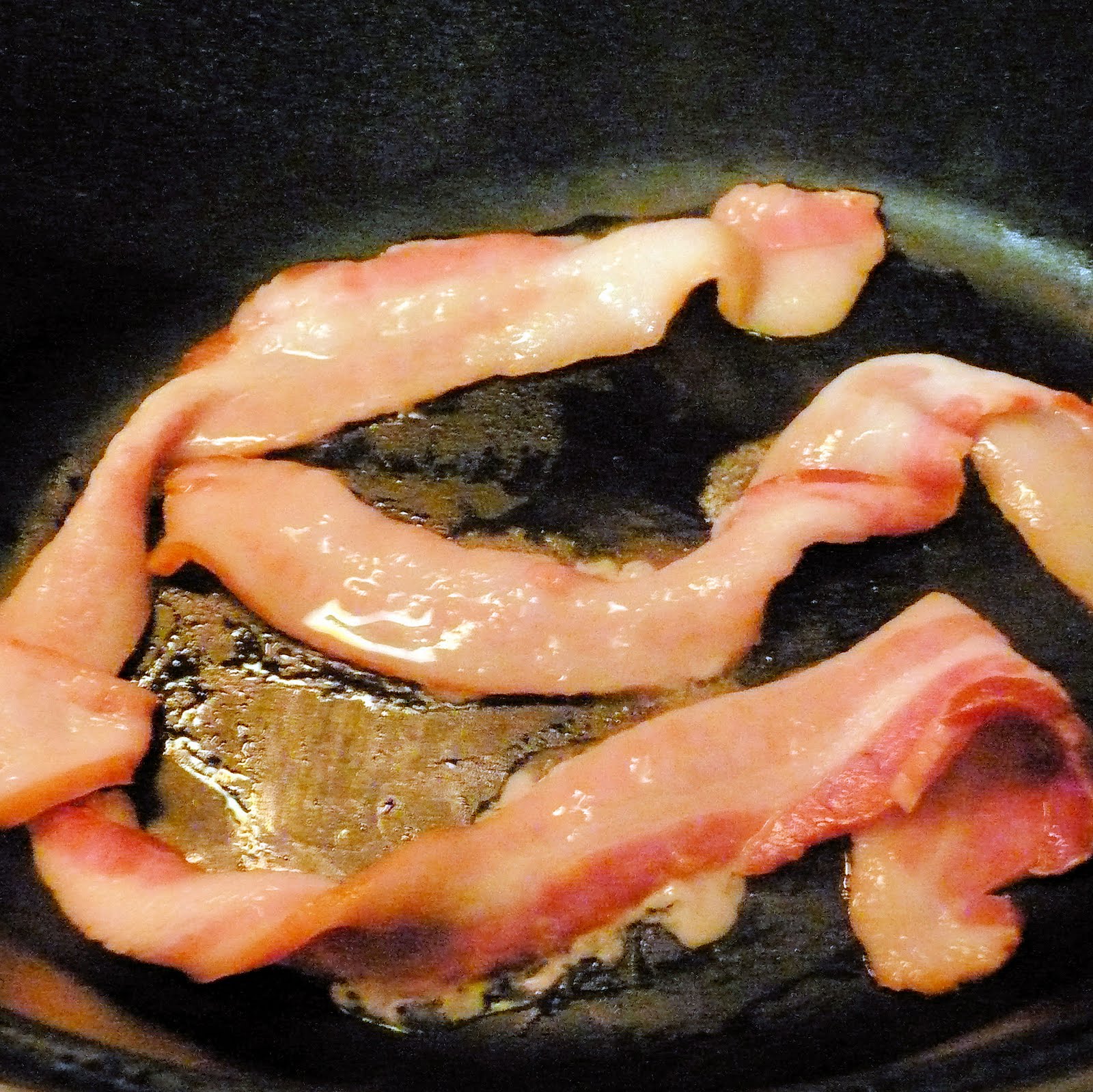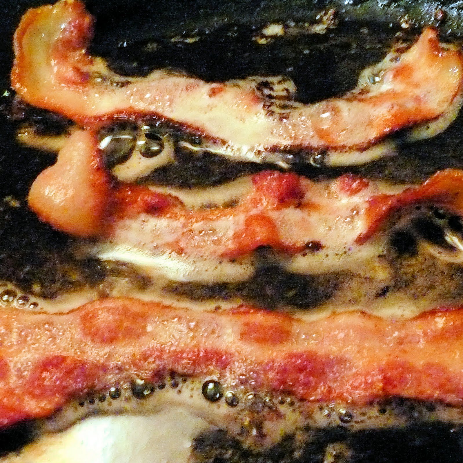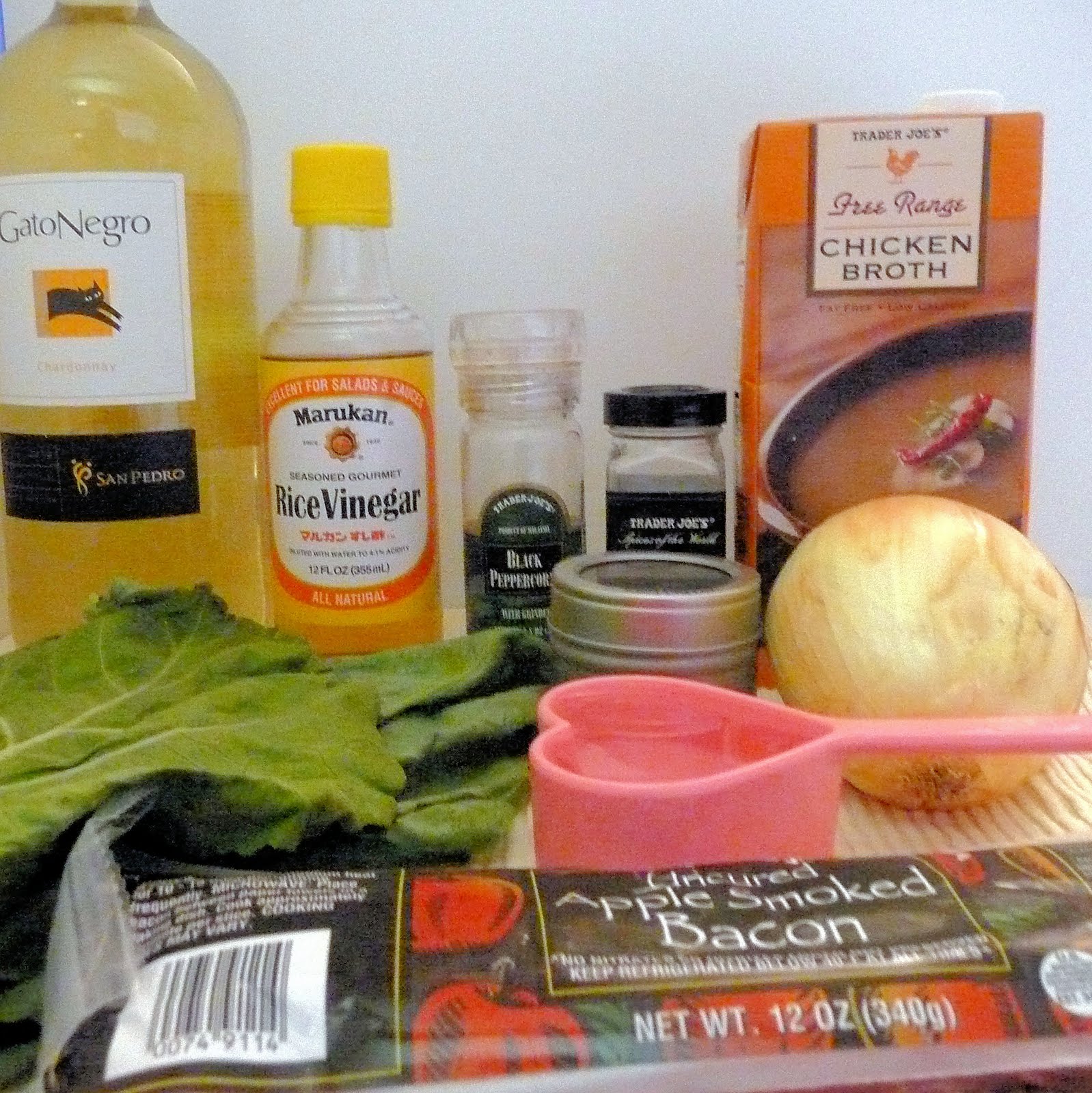 Remove from the pan and allow to cool. While waiting for the bacon to cool, prepare your onion and collard greens. Crumble the bacon once cooled.