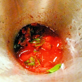Using a muddler or the back of a spoon, muddle the ingredients together. Muddling is crushing ingredients to allow the flavors and oils to be released and combine.