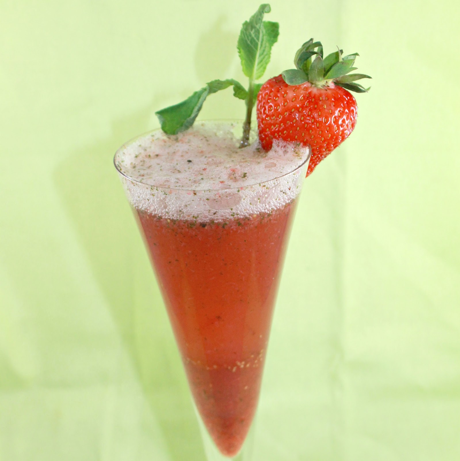 Serve garnished with mint leaves and a whole strawberry, if desired.