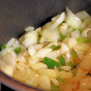 While this is cooking, add the extra cup water and the chopped peppers to a food processor. Pour the onion mixture into the food processor when finished cooking. Blend until smooth. Stir in lime juice and cayenne.