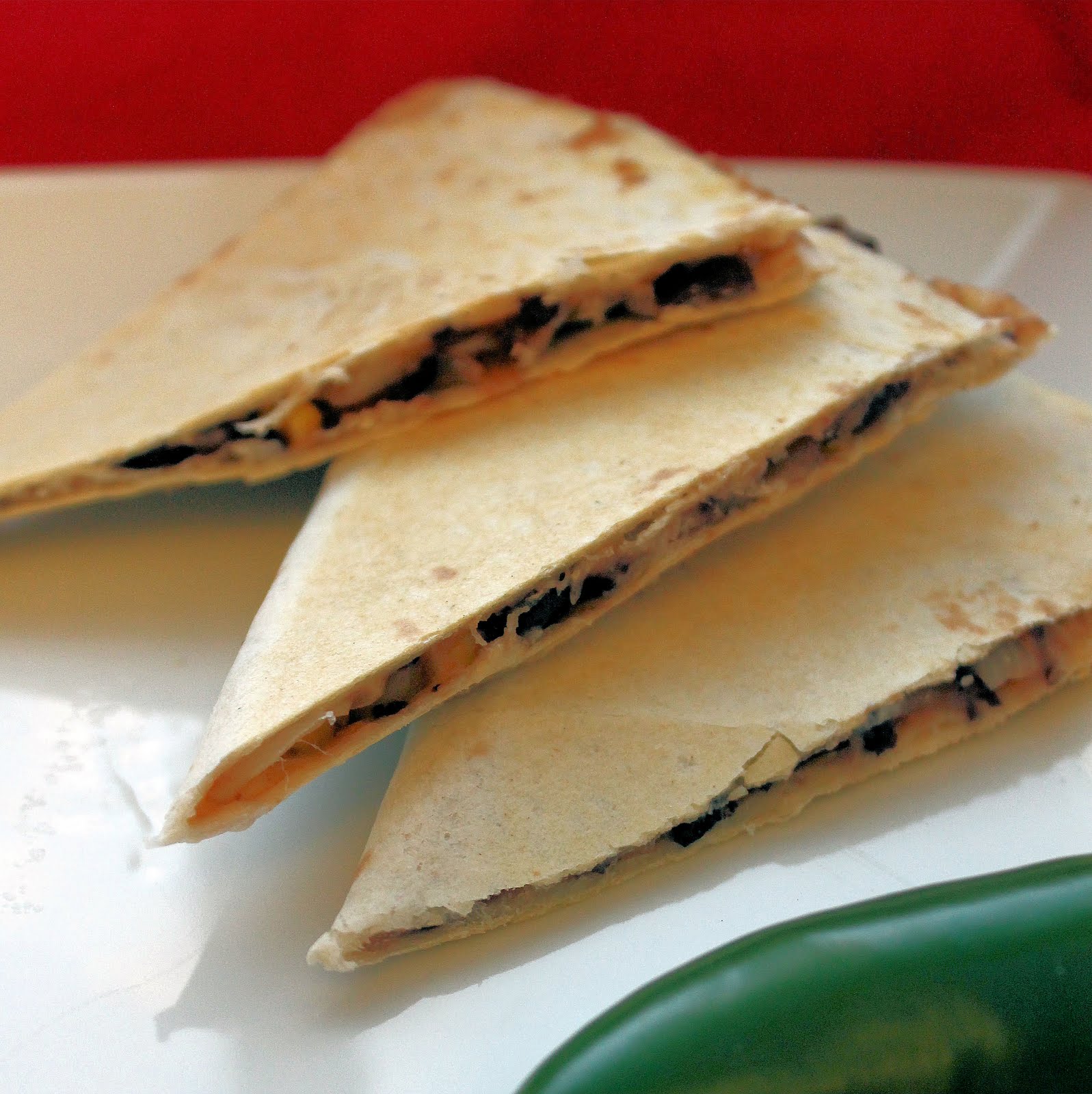 Heat up a griddle or a saute pan if you don’t have a griddle. Place a 1/2-cup portion of the bean mixture on half of a side of a tortilla.
