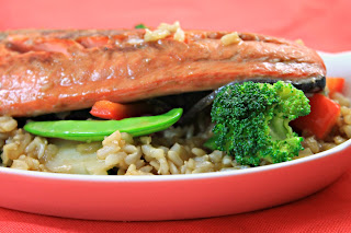 Ingredients: (I cut this recipe for Salmon Teriyaki Stir Fry down to two servings to make it easier. Multiply as needed)